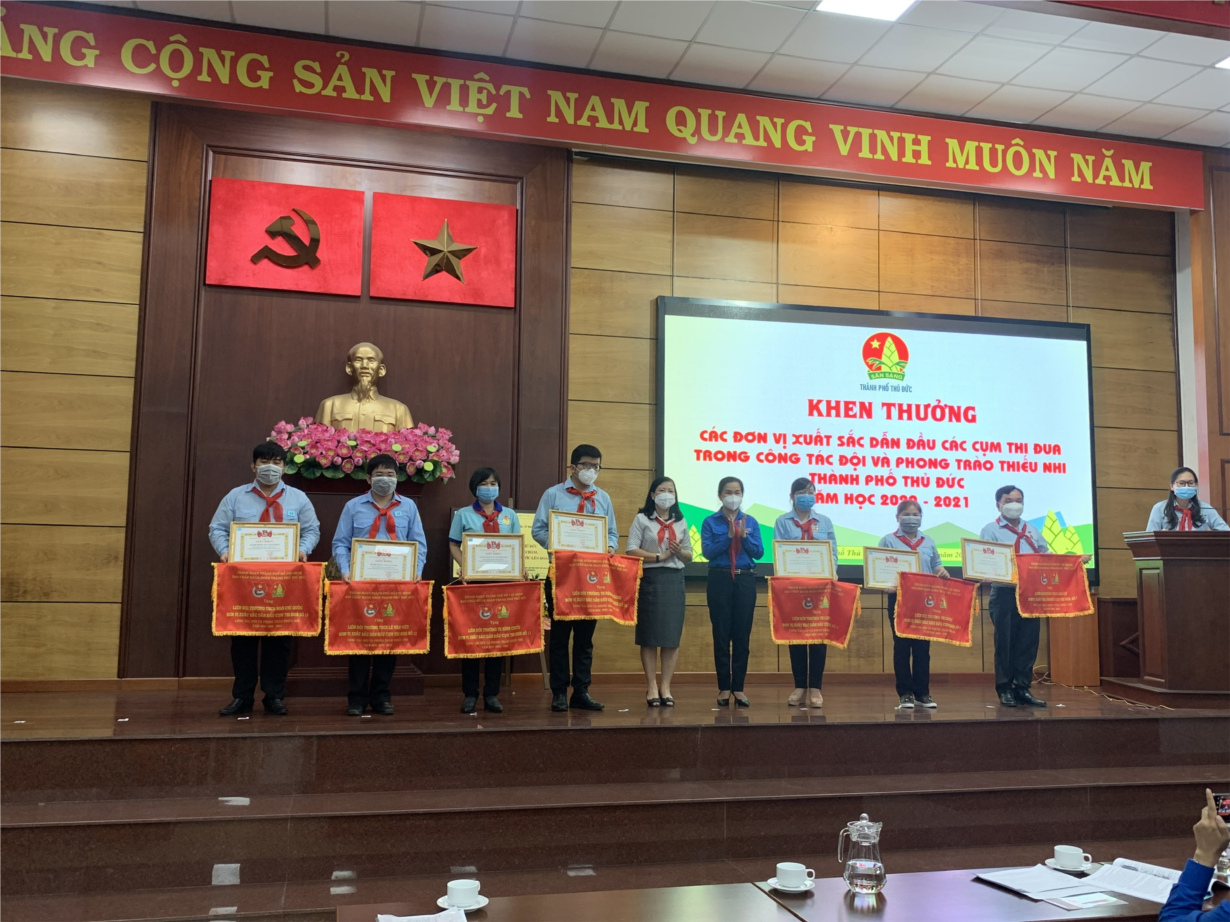 Trong hội nghị đã trao các phần tuyên dương, khen thưởng đến các cá nhân, tập thể đạt kết quả cao trong năm học 2020 - 2021. Trong đó, Liên đội THCS Lê Văn Việt đã đạt Bằng khen của Thành đoàn Tp.Hồ Chí Minh, giấy khen và cờ thi đua của Thành đoàn Tp.Thủ Đức dành cho đơn vị dẫn đầu cụm thi đua.