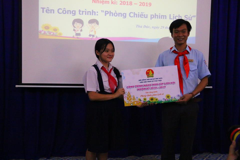 Trong không khí hân hoan chào mừng các ngày lễ kỷ niệm lớn của đất nước, sáng nay, ngày 29/3/2019, Liên đội THCS Lê Văn Việt tổ chức lễ bàn giao công trình măng non cấp liên đội nhiệm kỳ 2018 - 2019. Với tên gọi "Phòng chiếu phim lịch sử", công trình hứa hẹn trở thành nơi gặp gỡ, tìm hiểu nhiều kiến thức lịch sử bổ ích và mong rằng, các em Đội viên - học sinh tự hào hơn về trang sử hào hùng của đất nước ta.