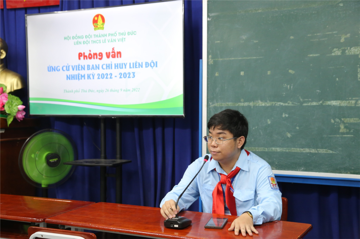 Sáng ngày 26/9/2022, Liên đội THCS Lê Văn Việt đã tổ chức tập huấn cho Ban Chỉ huy liên đội, chi đội; hướng dẫn tổ chức Đại hội Chi đội nhiệm kỳ 2022 - 2023; Triển khai thể lệ tổ chức các hội thi trong tháng 10; tổ chức phỏng vấn các ứng cử viên BCH Liên đội nhiệm kỳ mới.