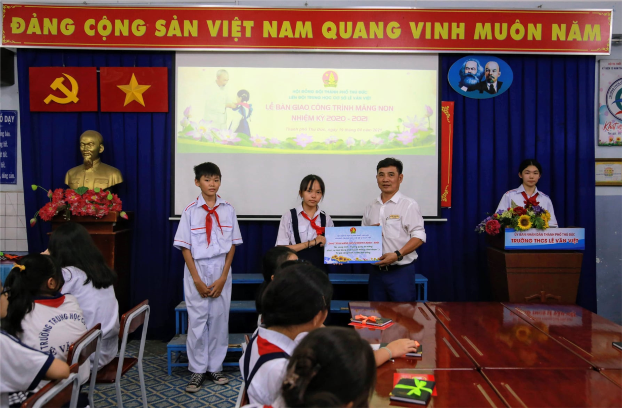 Vừa qua, Liên đội THCS Lê Văn Việt đã tổ chức Liên hoan Cháu ngoan Bác Hồ năm học 2020 - 2021. Đến tham dự buổi Liên hoan, Liên đội hân hạnh đón tiếp sự hiện diện của thầy Nguyễn Thành Nghệ (Bí thư chi bộ, hiệu trưởng nhà trường) cùng quý thầy cô là Chủ tịch Công đoàn, Bí thư Chi đoàn, Tổ trưởng chuyên môn nhà trường.